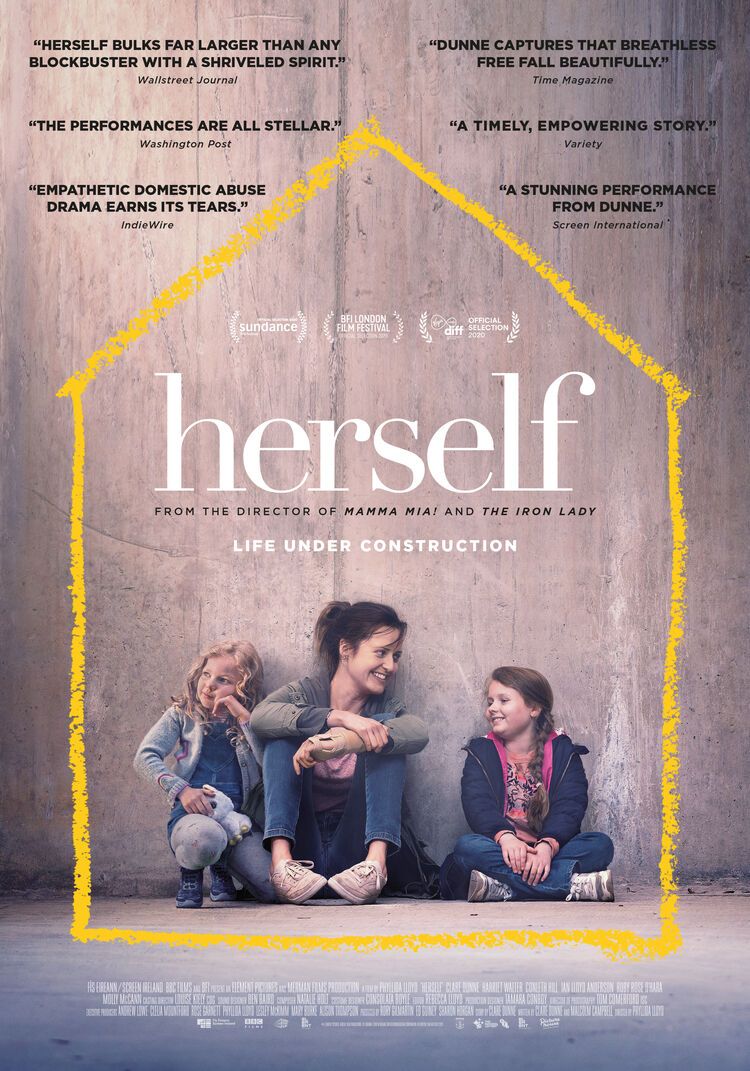 Director Phyllida Lloyd (‘The Iron Lady’, the ‘Mamma Mia!’ franchise) takes a script co-written by superb lead actor Clare Dunne and gives us what at first appears to be a story of domestic abuse as Sandra (Dunne), mother of two daughters, suffers at the hands of her violent husband, Gary (Ian Lloyd Anderson). But it soon morphs into something much more positive and empowering, as Sandra, having quit Gary for good, begins to rebuild her life—and begins the process of building her own home on a small piece of land donated by her employer (Harriet Walter)…