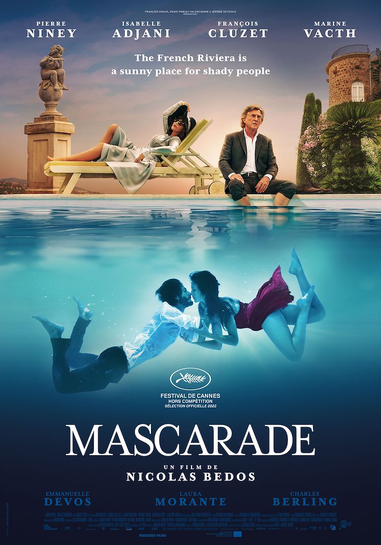 Set on the French Riviera and featuring a ‘who’s who’ of French acting talent, Nicolas Bedos’ terrific thriller will have you guessing at every plot twist and turn. After his dancing career is cut short by a motorcycle accident, gigolo Adrien (Pierre Niney) spends his time on the Riviera, where he is supported by former movie star Martha (Isabelle Adjani). His life takes a new turn when he meets the beautiful con-artist Margot (Marine Vacth, fabulous). Together, they come up with a dark plan to set themselves free from the bonds preventing a new life together… ‘Love makes fools of everyone in “Masquerade” (“Mascarade”). Nicolas Bedos’ elaborate, spider’s web of intrigue and betrayal trails a twisty, double-dealing thriller around the tangled emotions of a tragic romance… It is a much darker prospect than the heart-warming charmer “La Belle Époque” (2019), but the satisfyingly slippery storytelling played to the hilt by an all-star cast promises a similar commercial success.’—Allan Hunter, Screen