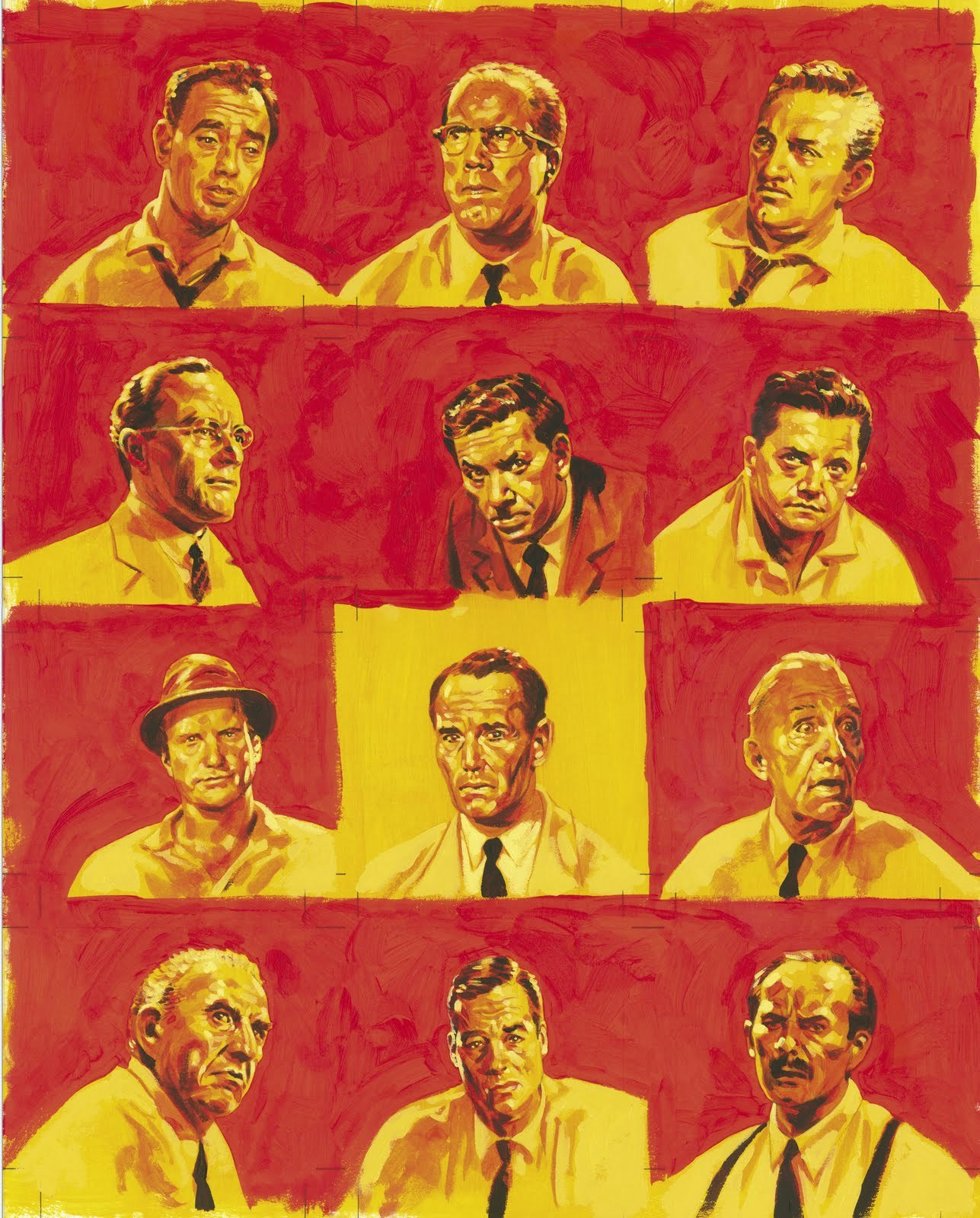 Klassieker uit de jaren vijftig. Een Amerikaanse jury beslist over schuld of onschuld van een jongen die mogelijk ter dood veroordeeld wordt. Elf leden zijn overtuigd van schuld, maar één man vraagt door en dwingt de groep tot heroverweging.