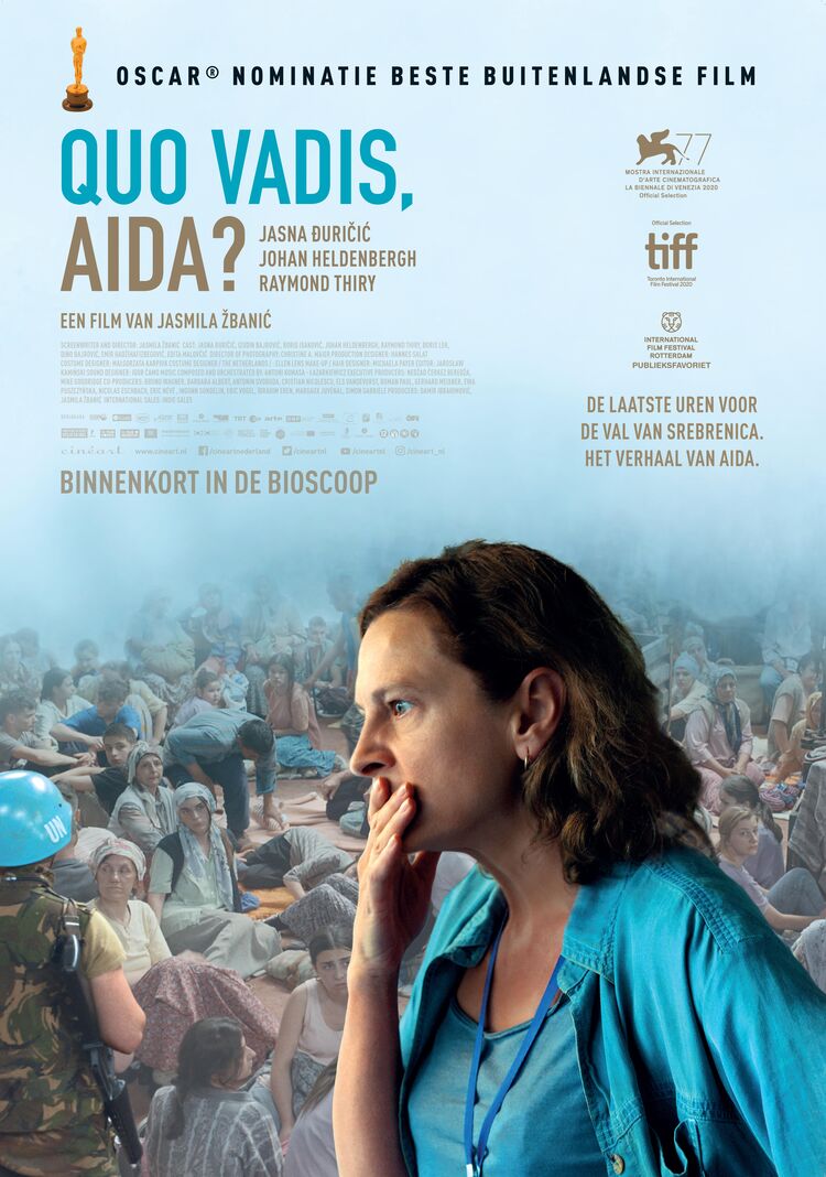 Quo Vadis, Aida? is een Bosnische speelfilm van Jasmila Žbanić (GRBAVICA, winnaar Gouden Beer) die een fictieve weergave geeft van de genocide in Srebrenica. Met onder anderen Raymond Thiry (PENOZA) en Johan Heldenbergh (THE BROKEN CIRCLE BREAKDOWN) als Dutchbatters. Aida (Jasna Đuričić) werkt in Srebrenica op de Nederlandse VN-basis als tolk in dienst van de Verenigde Naties. Samen met haar gezin en 20.000 andere Bosnische moslims zoekt zij een veilig onderkomen vanwege het oprukkende Bosnisch-Servische leger. De film toont de uren voorafgaand aan de dramatische evacuatie van de vluchtelingen. Tot dan is Aida er zeker van dat de VN ze zou beschermen, maar als de chaos steeds groter wordt, probeert ze uit alle macht zelf haar man en zonen te redden. Meer dan 8.000 Bosnische vluchtelingen worden omgebracht. Quo Vadis, Aida? werd genomineerd voor een Oscar in de categorie Beste Buitenlandse film en geselecteerd voor de Officiële Competitie van het filmfestival van Venetië en Toronto. De film won meerdere prestigieuze prijzen waaronder de Publieksprijs op het International Film Festival Rotterdam (IFFR) en de Grand Jury Award op Movies that Matter. 'Meeslepend, aangrijpend en hartverscheurend,' aldus Variety.
