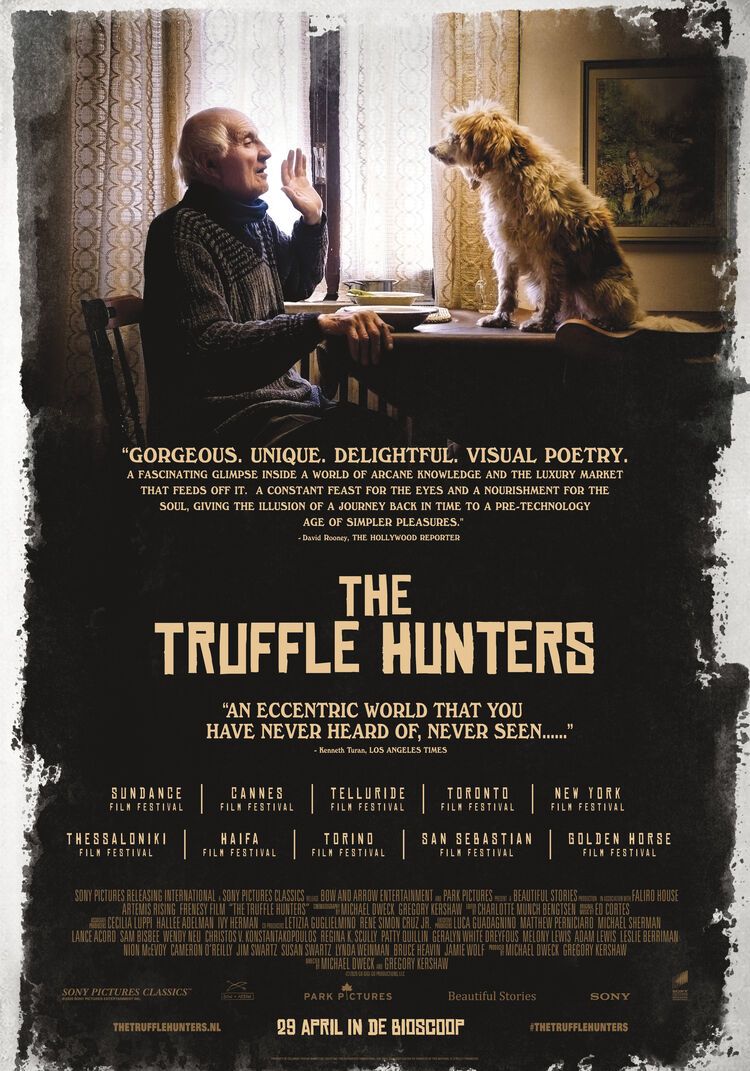 Diep in de bossen van Piemond in Noord-West Italië zoekt een groep oude mannen samen met hun trouwe honden naar ’s werelds duurste ingrediënt: de witte Alba truffel. Deze zeldzame delicatesse is ondanks de verregaande moderne technologie nog niet gecultiveerd. De mannen zijn van generatie op generatie geoefend in het zoeken naar de truffels en ze worden begeleid door hun goed getrainde honden met hun scherpe reuk. Ze leiden een eenvoudig en rustig bestaan in harmonie met hun honden en de schilderachtige omgeving. Ze zijn niet gebonden aan een mobiele telefoon of internet en hechten belang aan het het onderhouden van persoonlijk contact met de medebewoners in hun kleine gemeenschap. Terwijl de voorraad van de witte Alba truffel afneemt, groeit de vraag naar dit product. Door de klimaatverandering, de ontbossing en het gebrek aan jonge mensen die de traditie wil voortzetten, is de delicatesse felbegeerder dan ooit en het goedbewaarde geheim van de truffelzoekers dreigt verloren te gaan. Bovendien bewaken de mannen meer dan het mysterie rond de Alba truffel: de sleutel tot een rijk en zinvol leven. The Truffle Hunters is een fascinerende documentaire geregisseerd door Michael Dweck & Gregory Kershaw.